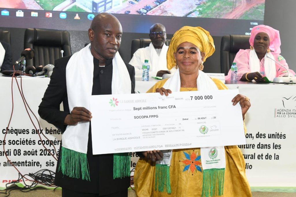 Le ministre de l’agriculture de l’équipement rural et de la souveraineté alimentaire Aly ngouille Ndiaye a présidé la cérémonie officielle des remises de chèques aux bénéfices des sous-projets, des champs écoles de démonstration des unités de transformation et des coopératives PIESAN ( projets d’intensification Eco soutenable de l’agriculture dans les niayes. Un montant de 1.012.000.000 est alloué. Par cette même occasion le PIESAN a octroyé accompagné et financé a 222 sous-projets des montants qui dépassent d’un milliard de f CFA. 10 sociétés coopératives subventionnées pour les tracteurs, 5 sociétés plans d’actions, 4 unites de transformation pour des GIE et 6 champs écoles de démonstration.