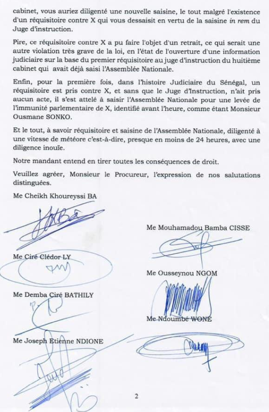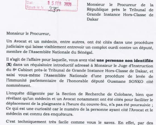 A la une [Document] Les avocats de Sonko saisissent le procureur Par Mapathé Diagne Dernière mise à jour lundi 15 février 2021 0 Partager 0 Partager FacebookTwitterWhatsAppPinterestEmail