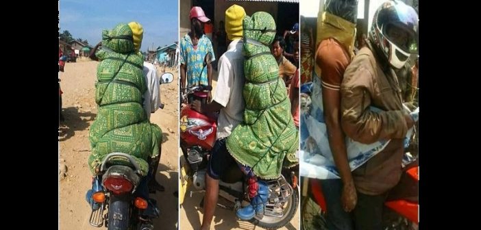 Les motards doivent effectuer près de 400 km, avec un cadavre au dos. Certaines familles pauvres sont obligées d’adopter cette technique parce qu’elles n’ont pas d’argent pour louer un corbillard.